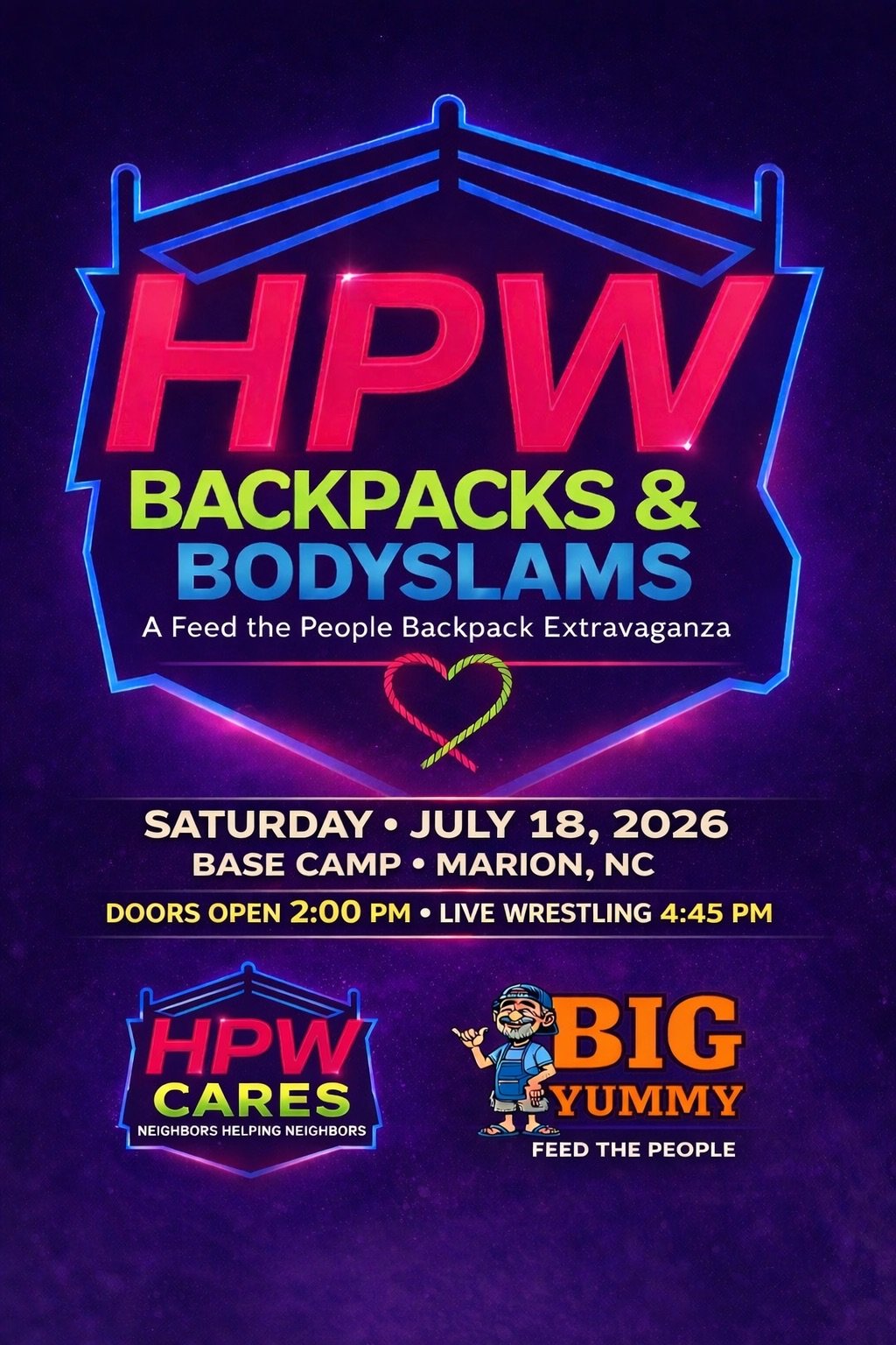Hometown Pro Wrestling presents Backpacks & Bodyslams — a family-first community event built around fun, connection, and giving back.
